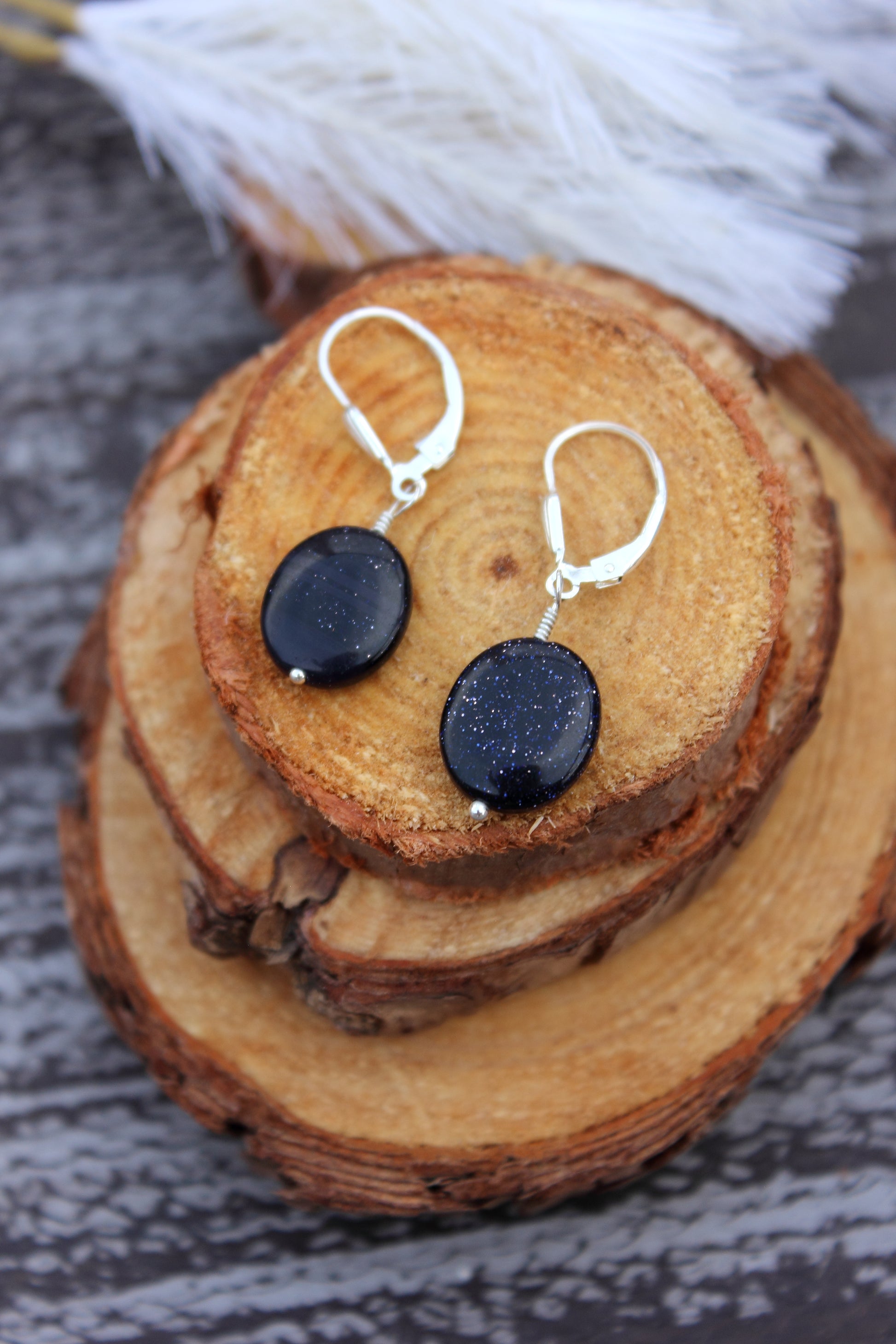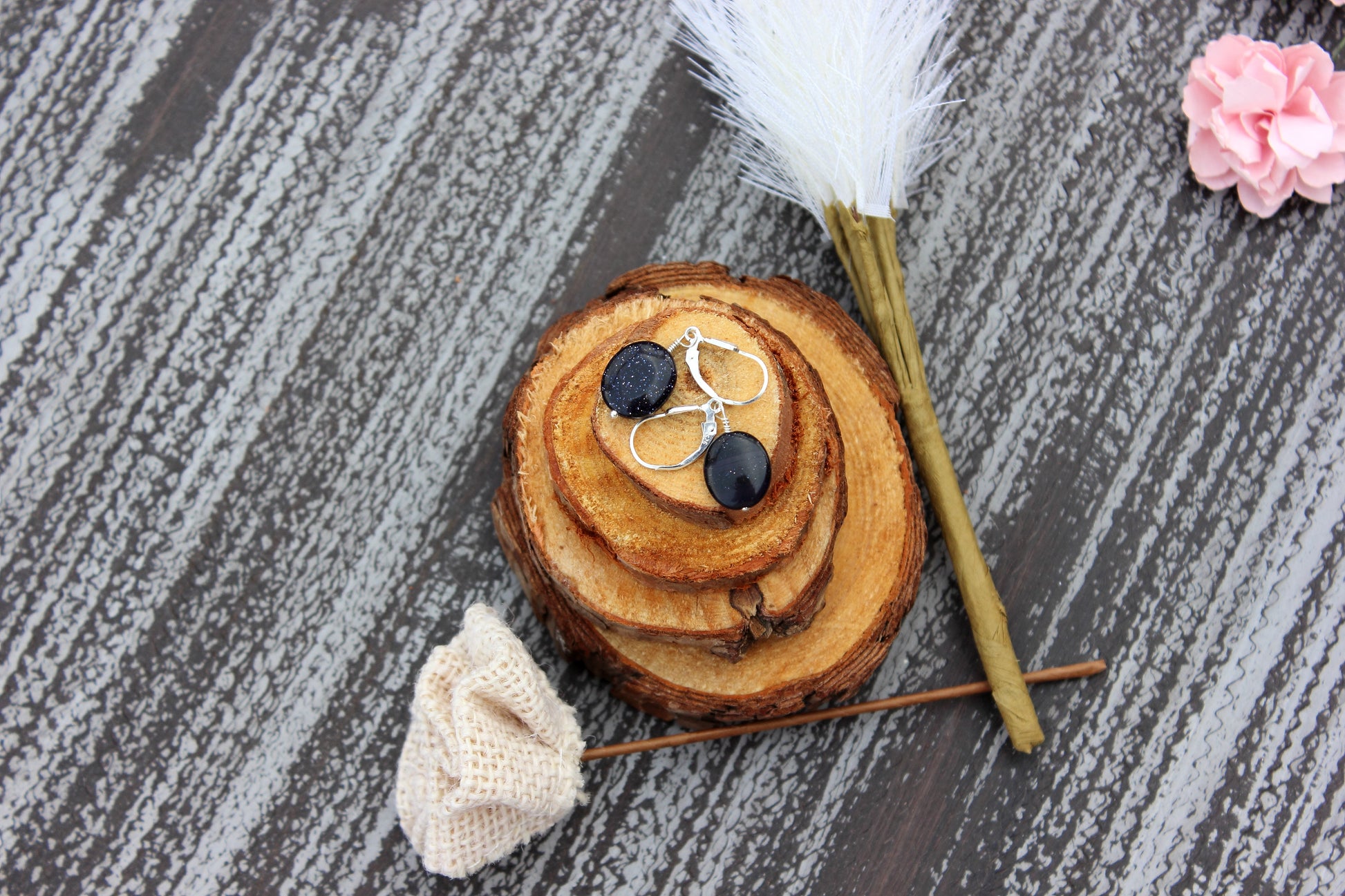 - Dimensions: 1 1/4 inches in length, 10x7 oval blue goldstone
