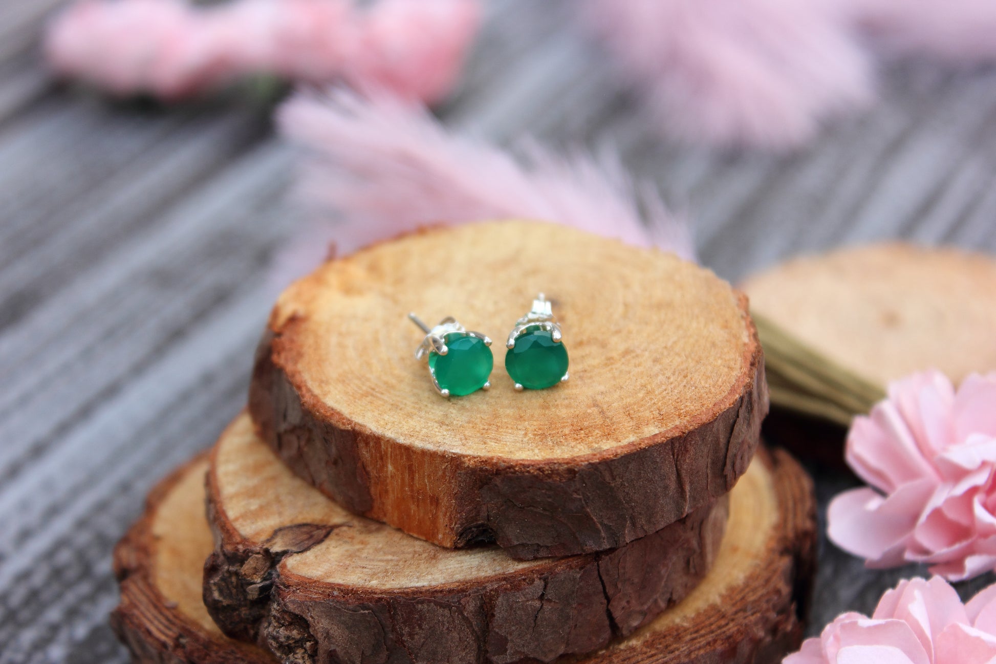 Green Onyx Stud Earrings