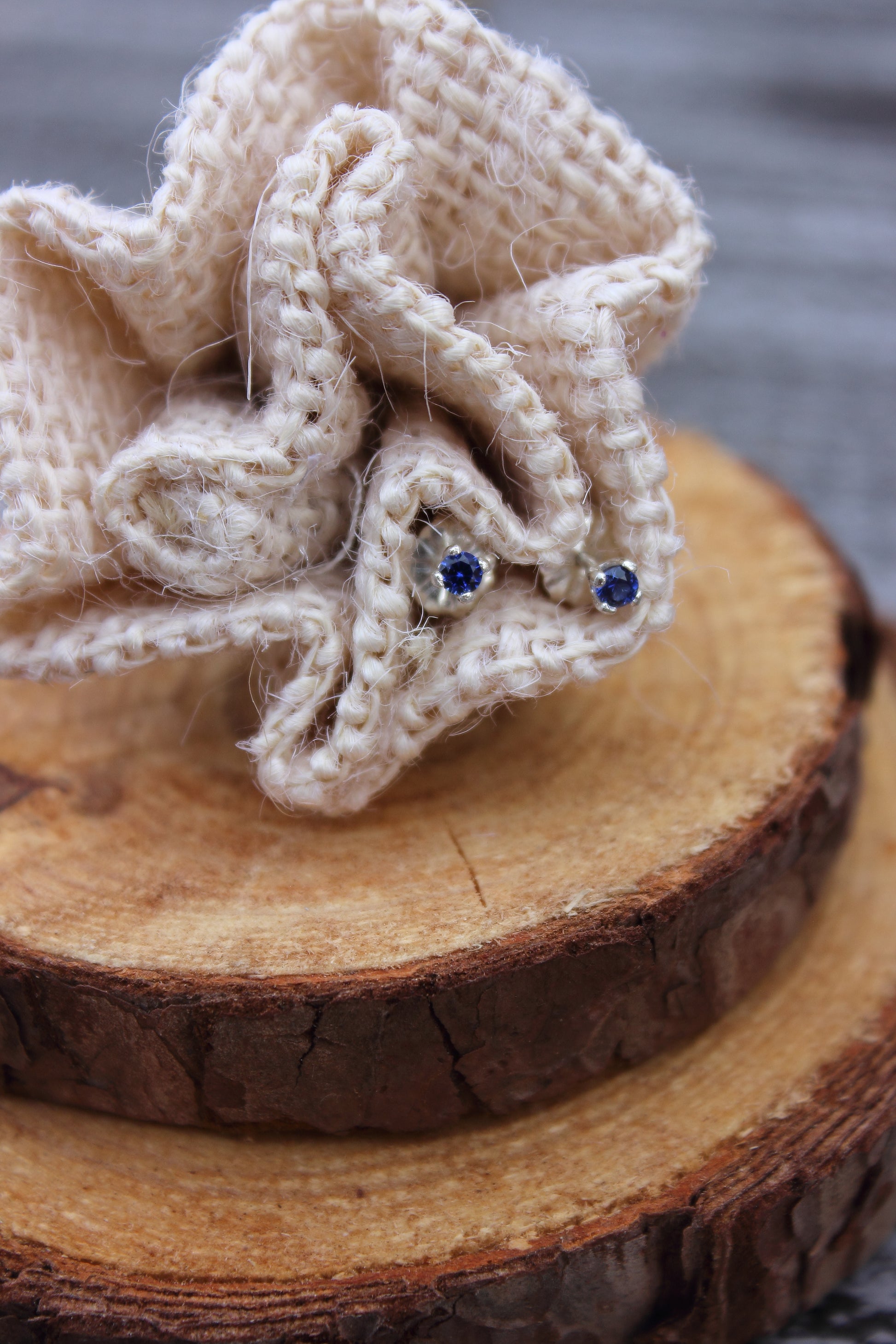 Tiny Gemstone Studs - Sapphires